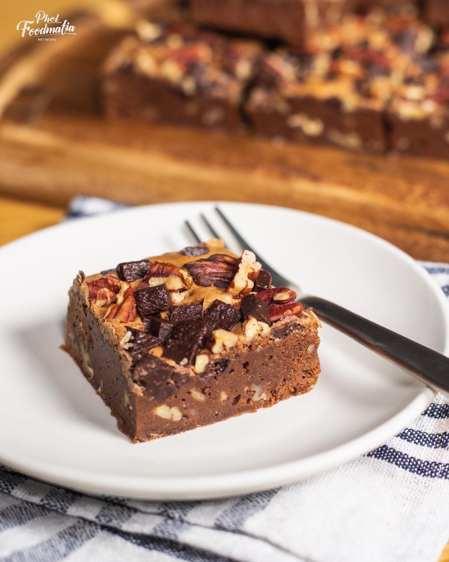 ช็อกโกแลตบราวนี่ หรือบราวนี่โกโก้ เมนูเบเกอรี่ยอดฮิต ด้วยเนื้อเค้กที่ฉ่ำ รสชาติเข้มข้นด้วยดาร์กช็อกโกแลตพรีเมี่ยม หอมกลิ่นวานิลลา และอัดแน่นด้วยถั่วพีแคนอบหอม ๆ ที่แทรก อยู่ในเนื้อและบนหน้าของบราวนี่ โรยหน้าด้วยช็อกโกแลตชังส์ ให้สัมผัสที่หลากหลาย อร่อยเข้ากันอย่างลงตัว