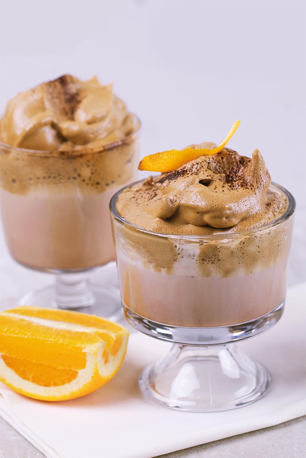 4. In a serving glass, add cocoa milk and top with dalgona coffee.